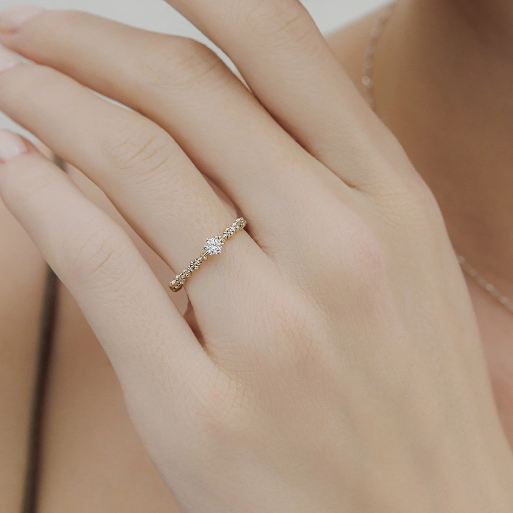 | Main 0.1ct with 0.03ct (12pcs) Band Width approx 2.4mm * Size written above is average value, and there might be a slight difference since it is handmade. |