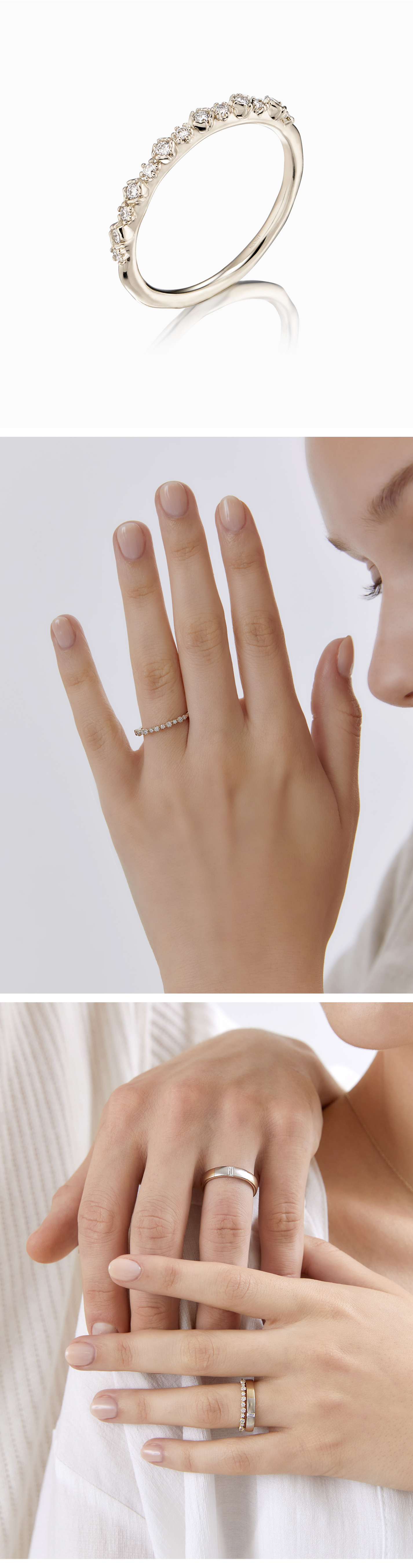 We offer eight types of alloys that suit various skin tones: Platinum (Pt950) / White / Calm-Grey / Champagne / Yellow / Rose / Beige-Rose / Warm-Brown. Each gold alloy is crafted with a unique blend ratio, focusing on subtle color variations.![]() |